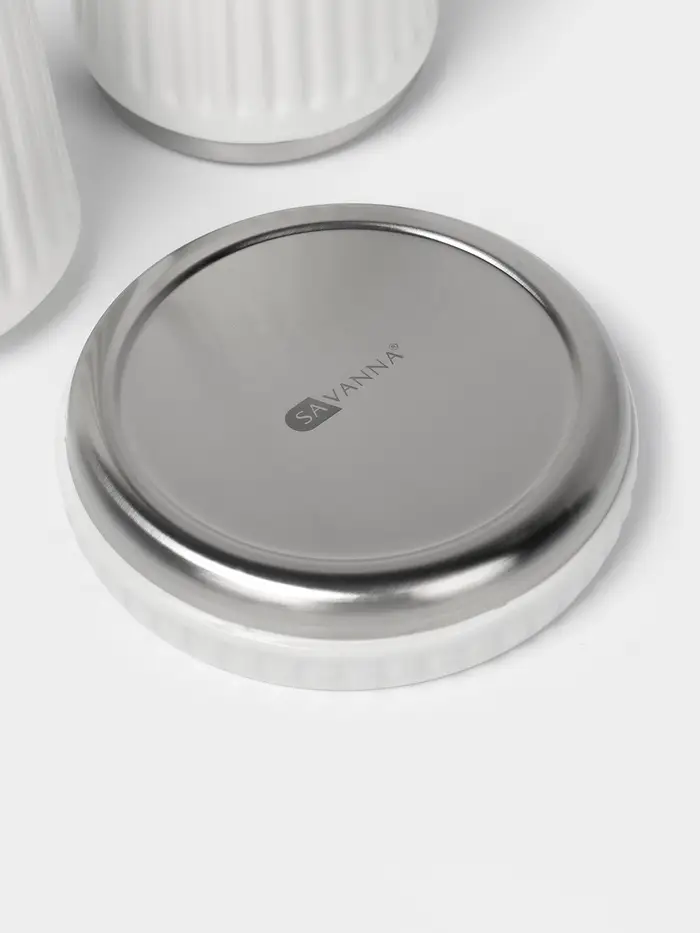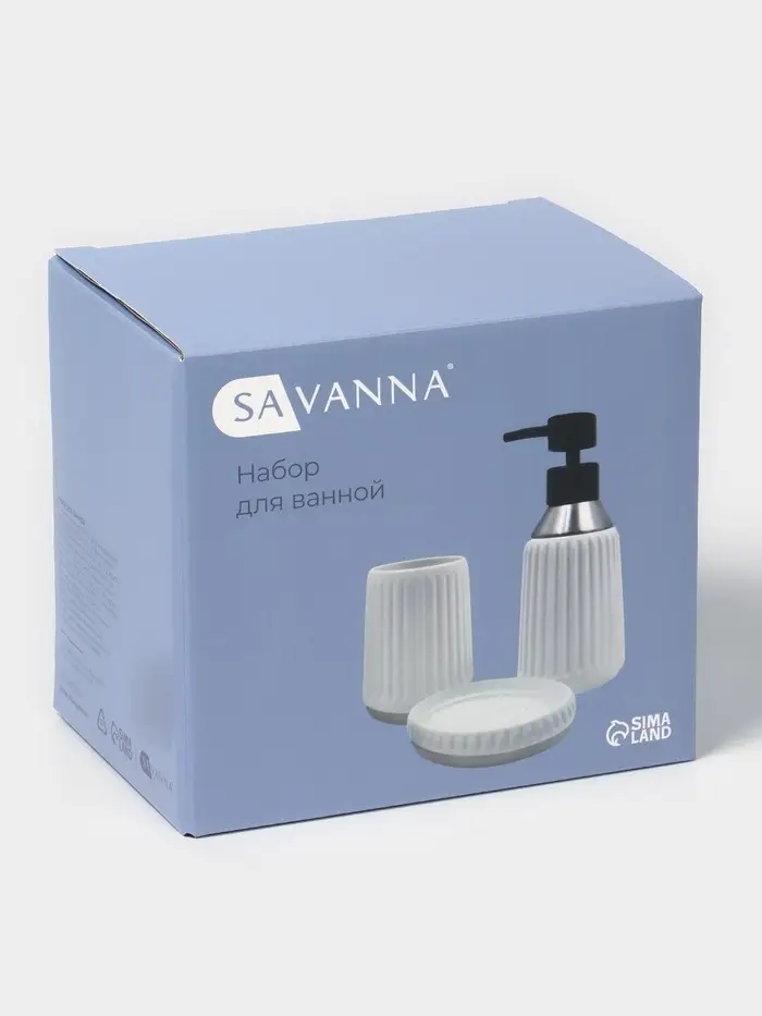 Аксессуары для ванной SAVANNA Monro, 4 предмета, мыльница, дозатор для мыла 450 мл, стакан, баночка, белые