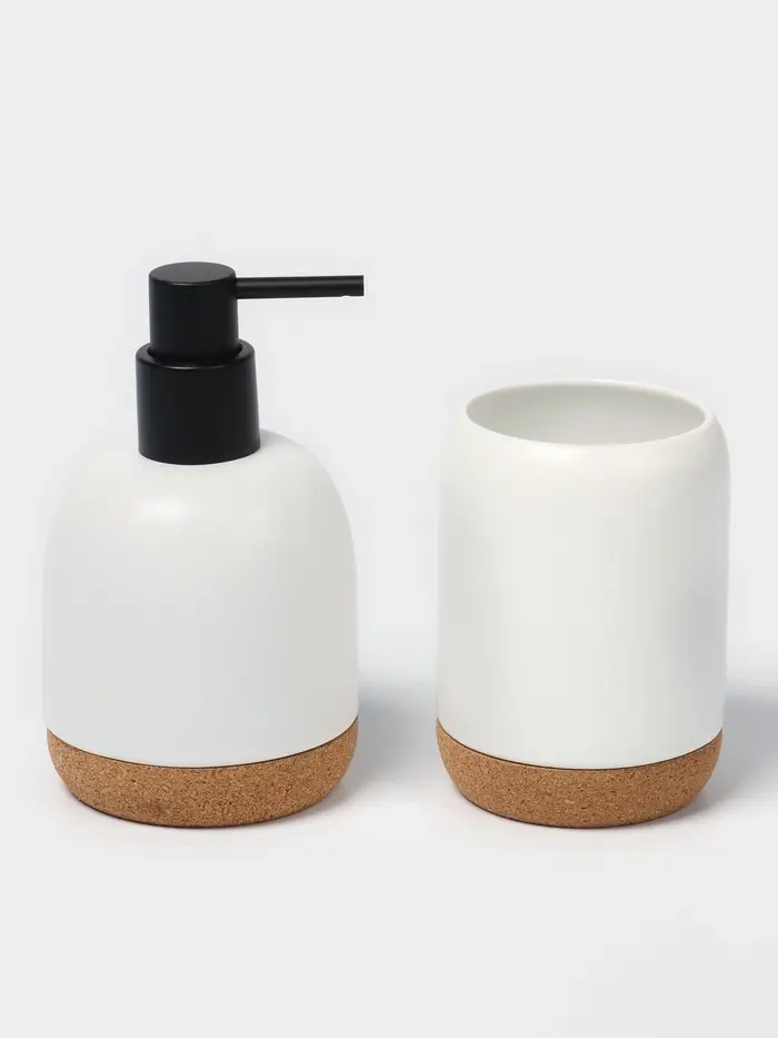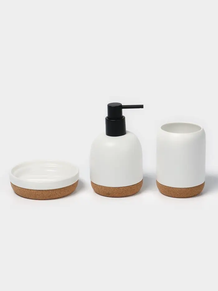 Набор для ванной SAVANNA «Пробка», 3 предмета, дозатор для мыла, стакан, мыльница