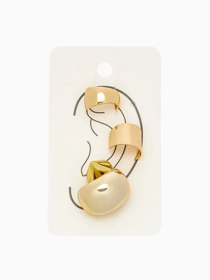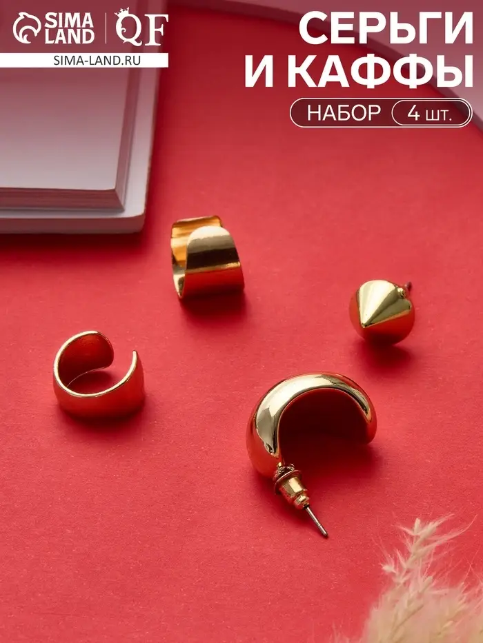 Серьги и кафф QF «Объёмные фигуры», набор 4 шт. цвет золото