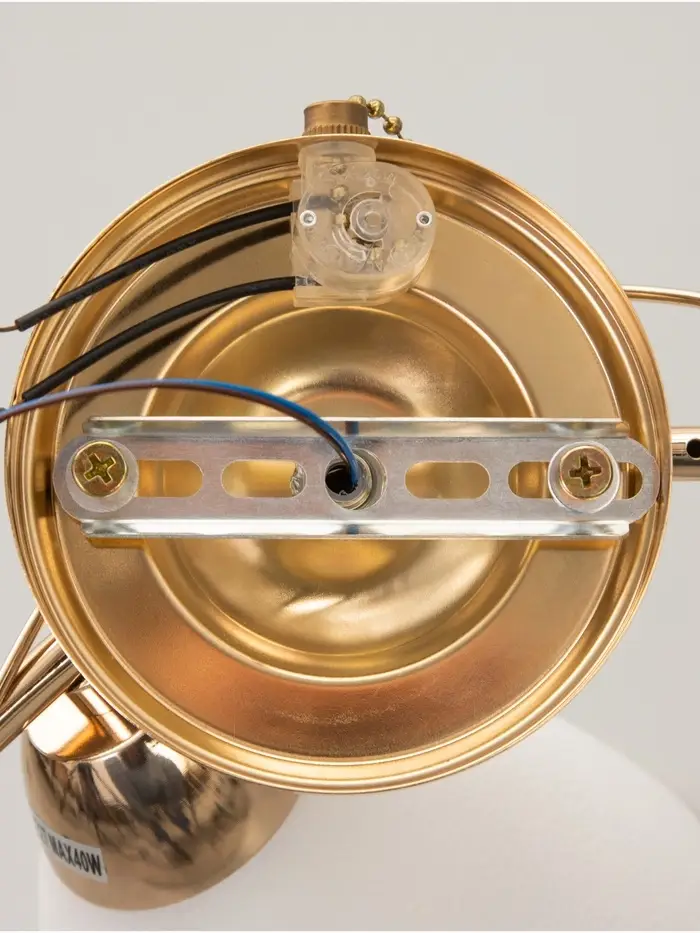 - Элегантный дизайн: золотое основание и белый плафон создают гармоничное сочетание, которое украсит любое помещение.