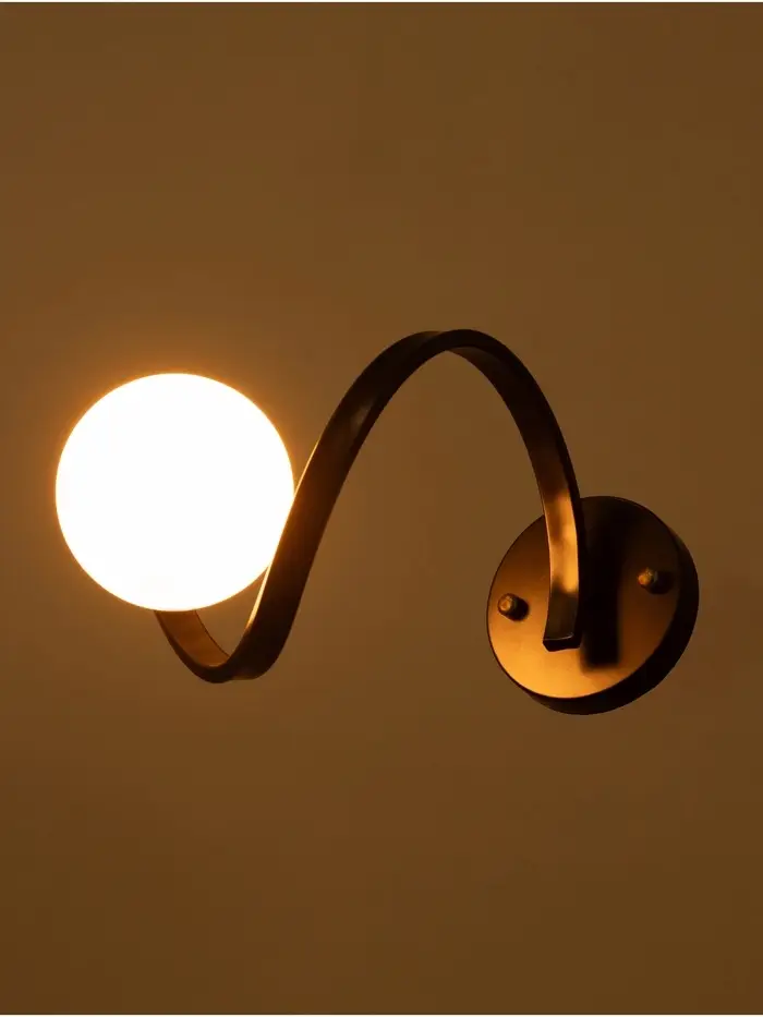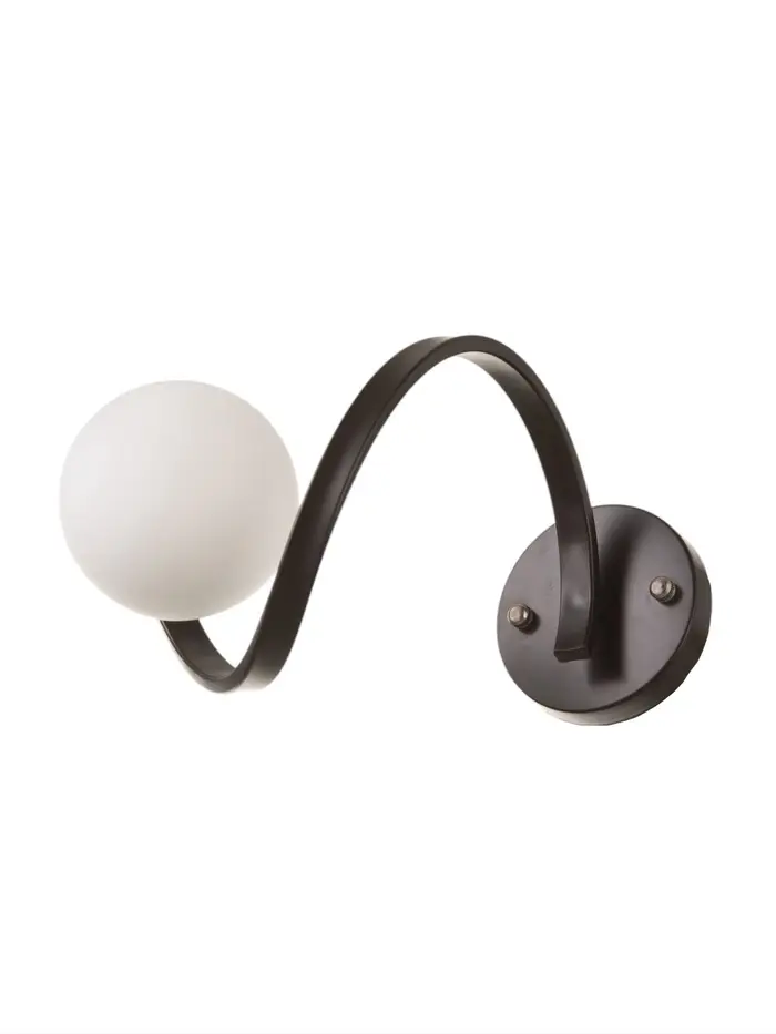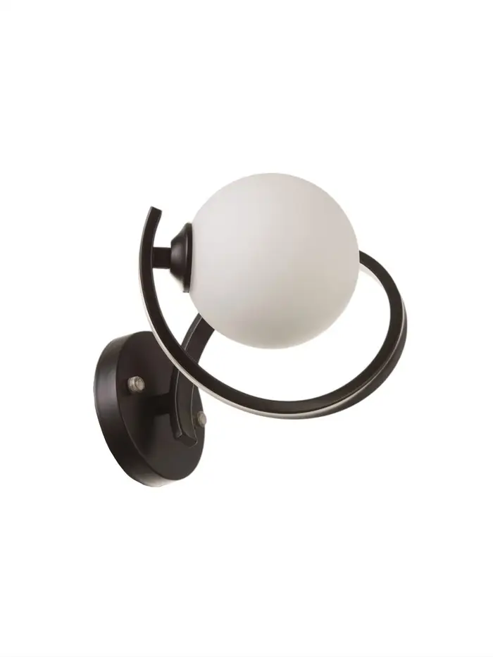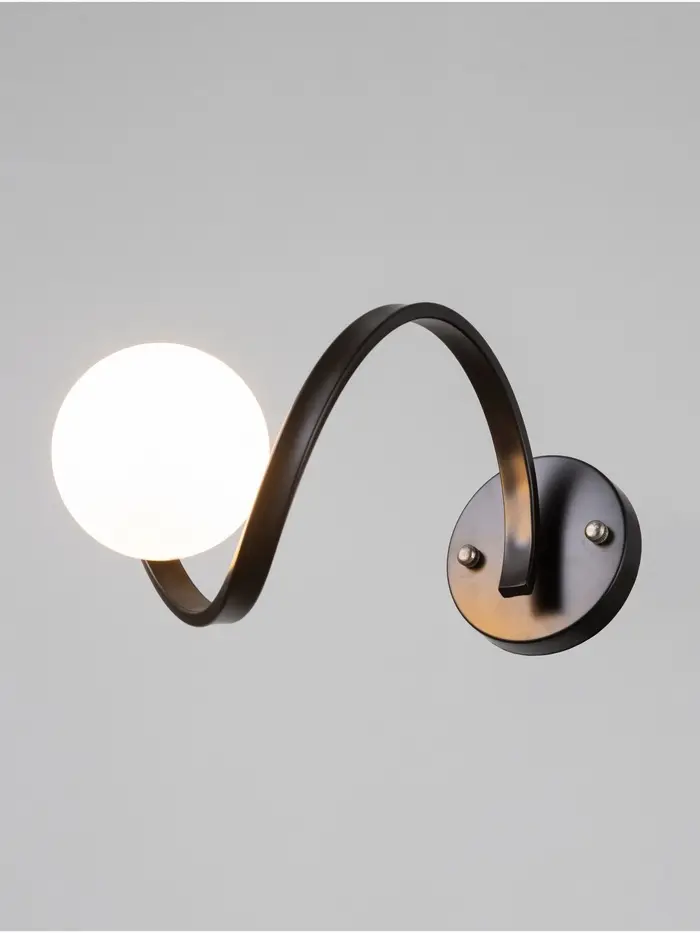 Представляем вам настенный бра, который станет стильным дополнением вашего интерьера. Светильник выполнен в дизайнерском стиле и идеально впишется в спальню, гостиную, офис или любое другое помещение. Основание бра выполнено из металла черного цвета, что придает ему современный и элегантный вид. Плафон, выполненный в белом цвете, мягко рассеивает свет, создавая уютную атмосферу.