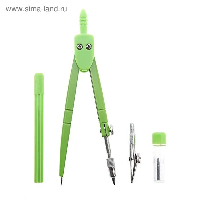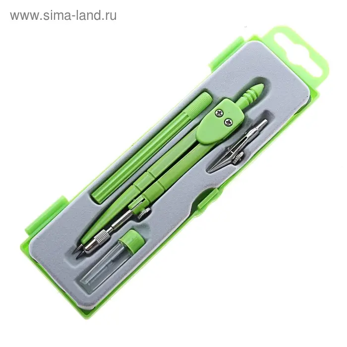- В набор входят четыре ключевых инструмента: металлический циркуль диаметром 120 мм, удлинитель для черчения больших окружностей, запасной грифель и рейсфедер.