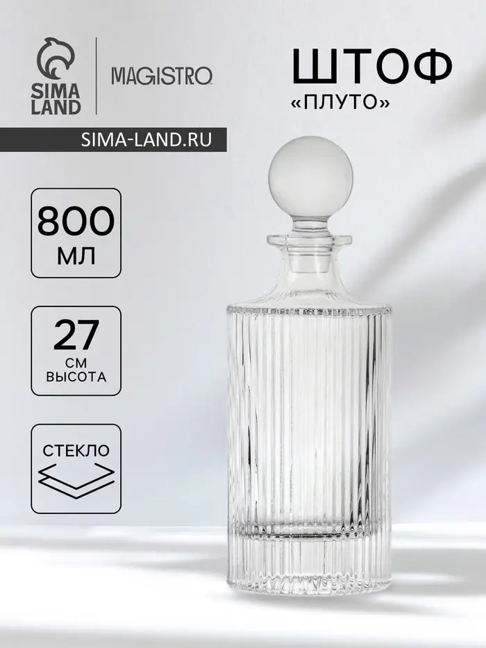 Штоф Magistro «Плуто», 800 мл, 9.97×9.97×27.5 см, стекло, прозрачный