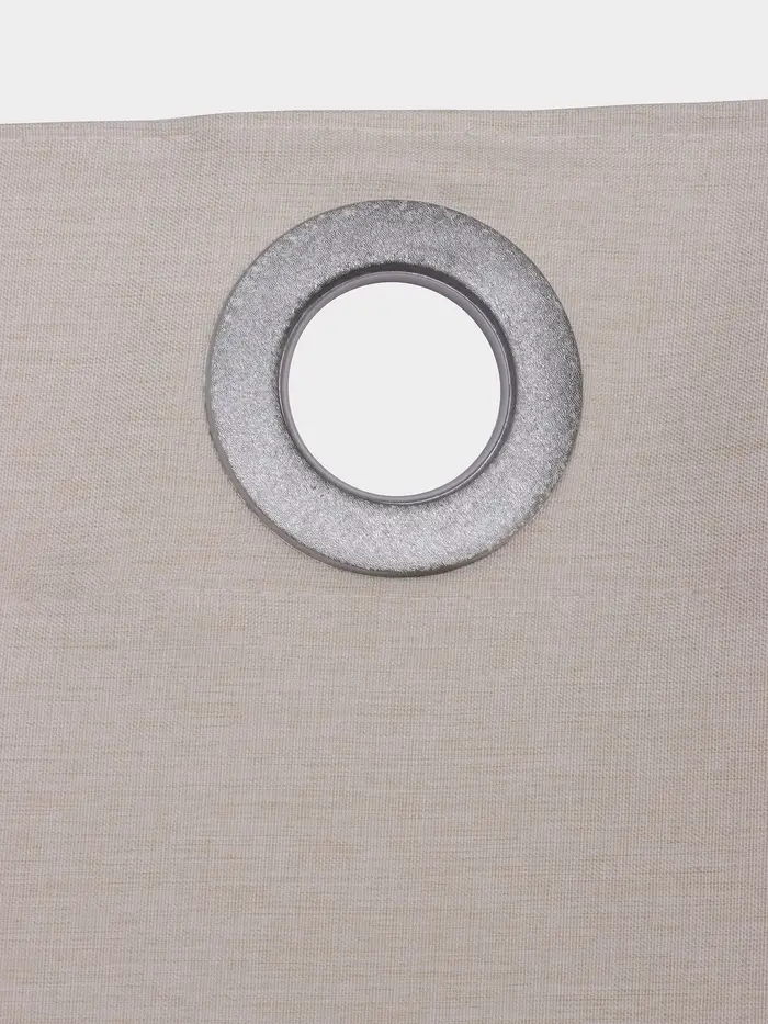 - Удобство использования: люверсы исключают необходимость дополнительных аксессуаров — штору можно повесить сразу после покупки.