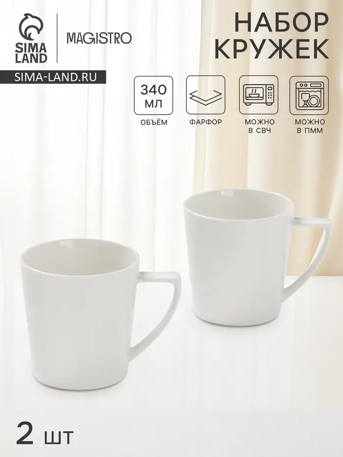 Насладитесь вашими любимыми напитками с комфортом и стилем, используя этот набор фарфоровых кружек. В комплект входят две кружки объемом 340 мл, выполненные из костяного фарфора в классическом белом цвете. Прекрасный выбор для ежедневного использования или в качестве подарка.