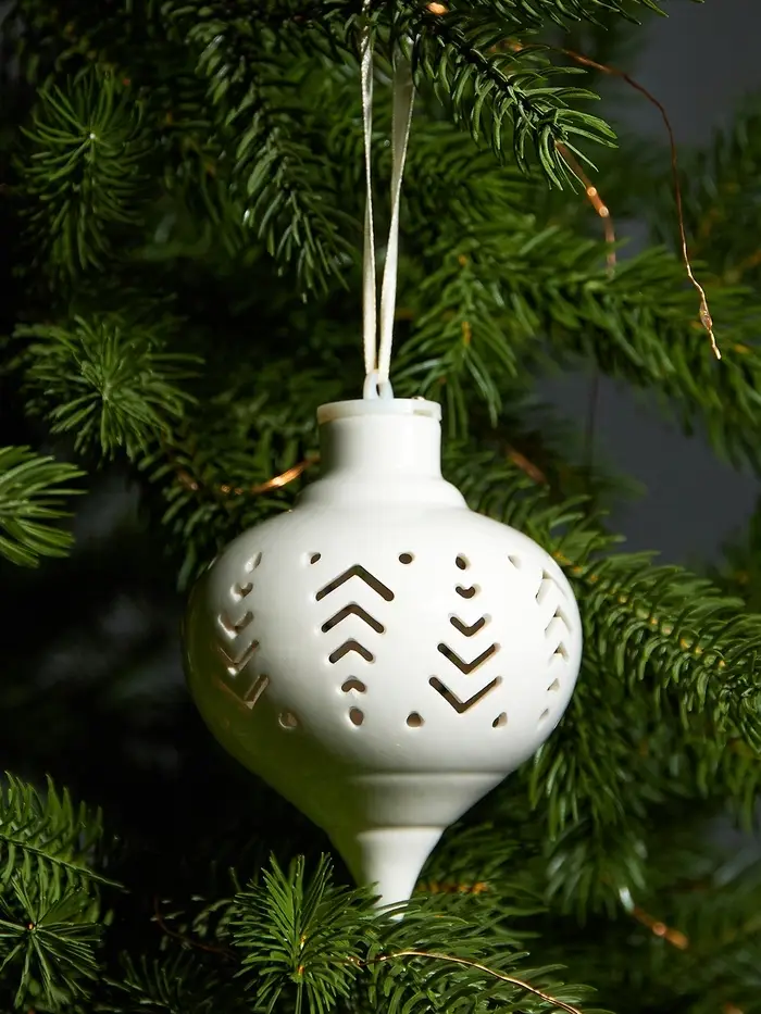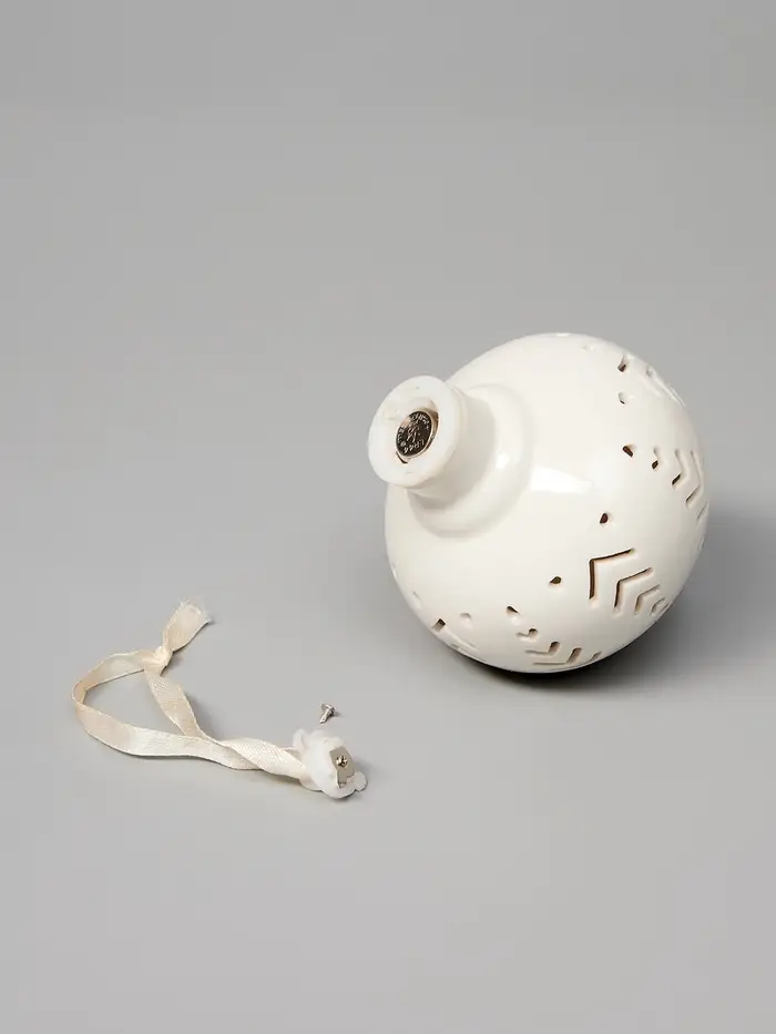 Керамический светящийся шар станет изысканным дополнением к вашему новогоднему декору ёлки. Этот декоративный элемент, с мягким тёплым свечением, создаст уютное настроение, украсив любую комнату. Питание от батареек обеспечивает свободу установки и использование в любых уголках вашего дома.