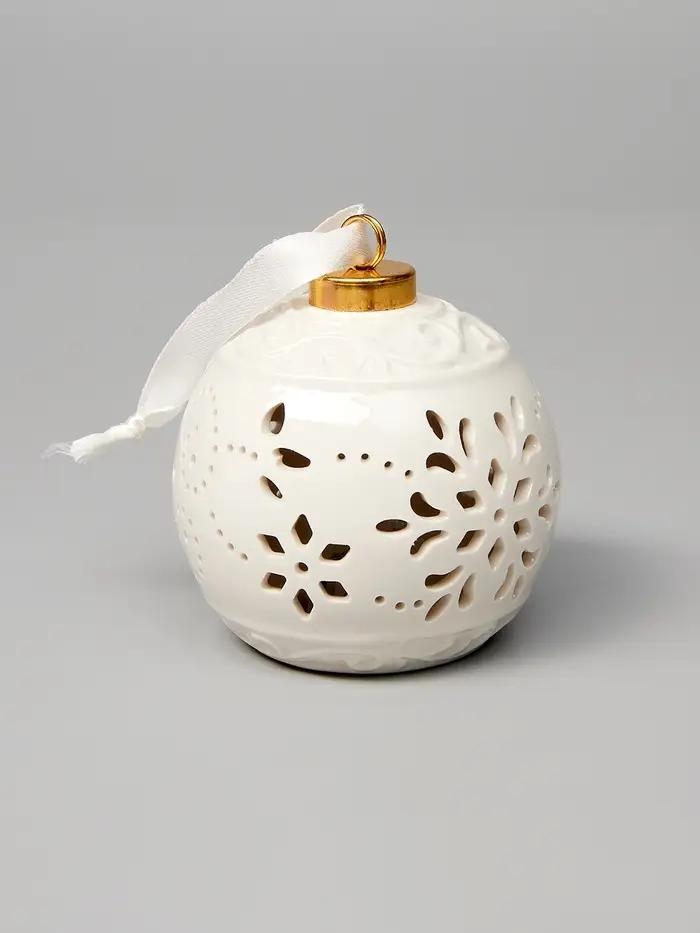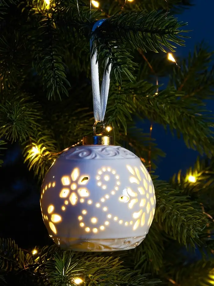Керамическая ёлочная игрушка с подсветкой станет прекрасным украшением вашего новогоднего декора. Этот уникальный светящийся шар излучает тёплый белый свет, добавляя уют и атмосферу праздничного вечера. Встроенный LED делает его визуально привлекательным, а керамическая поверхность придает игрушке изысканность и прочность.