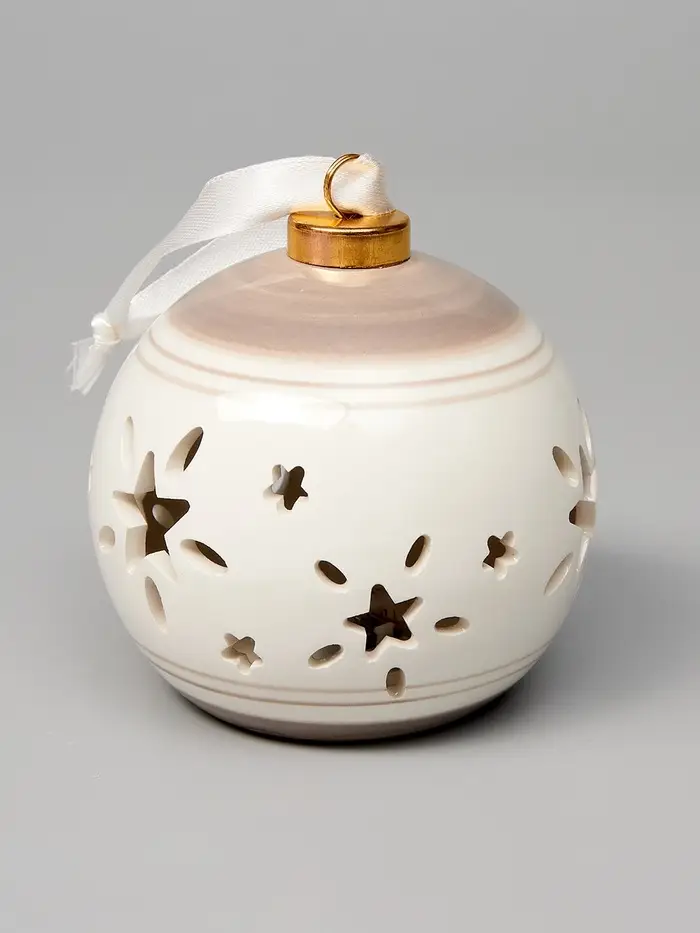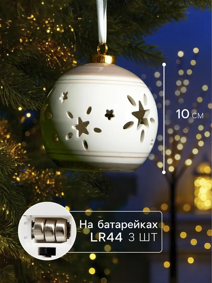 Ёлочный шар с подсветкой «Звёзды беж», 10×8.8×8.8 см, 1 LED, керамика, от батареек LR44×3, керамика, свечение тёплое белое
