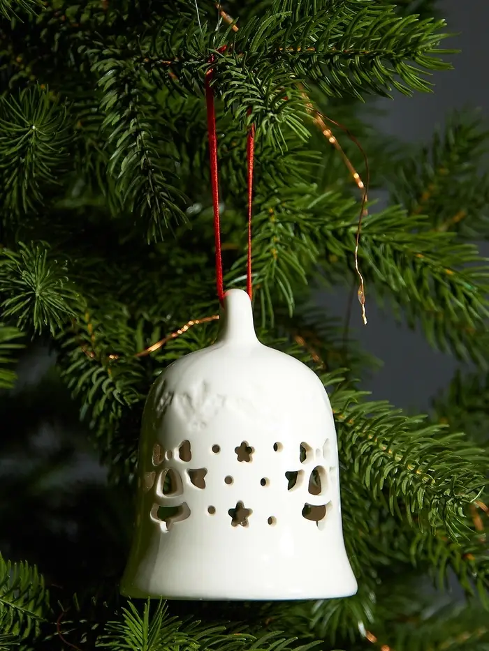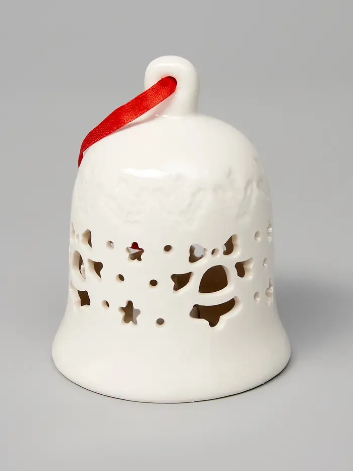 Ёлочный шар с подсветкой «Колокольчик», 10.5×8.3×8.3 см, 1 LED, керамика, от батареек LR44×3, керамика, свечение тёплое белое
