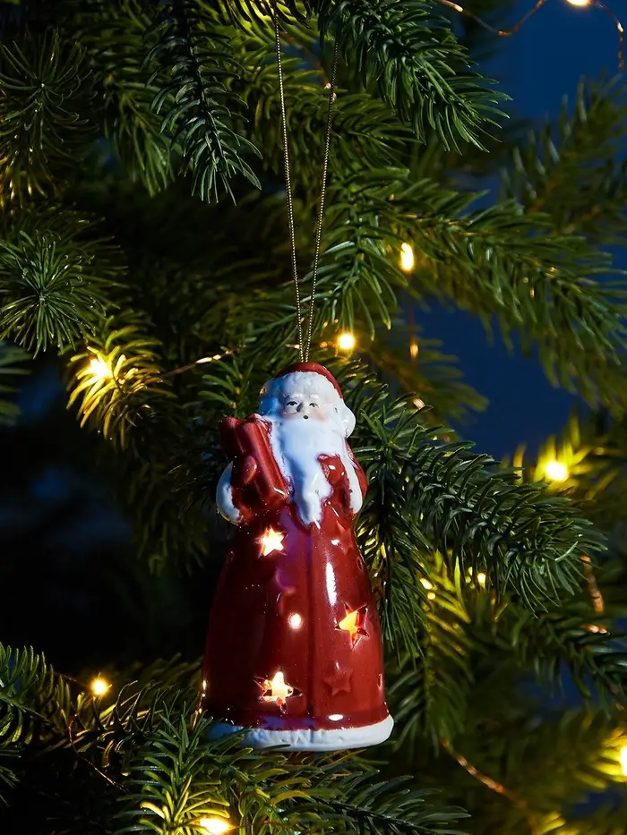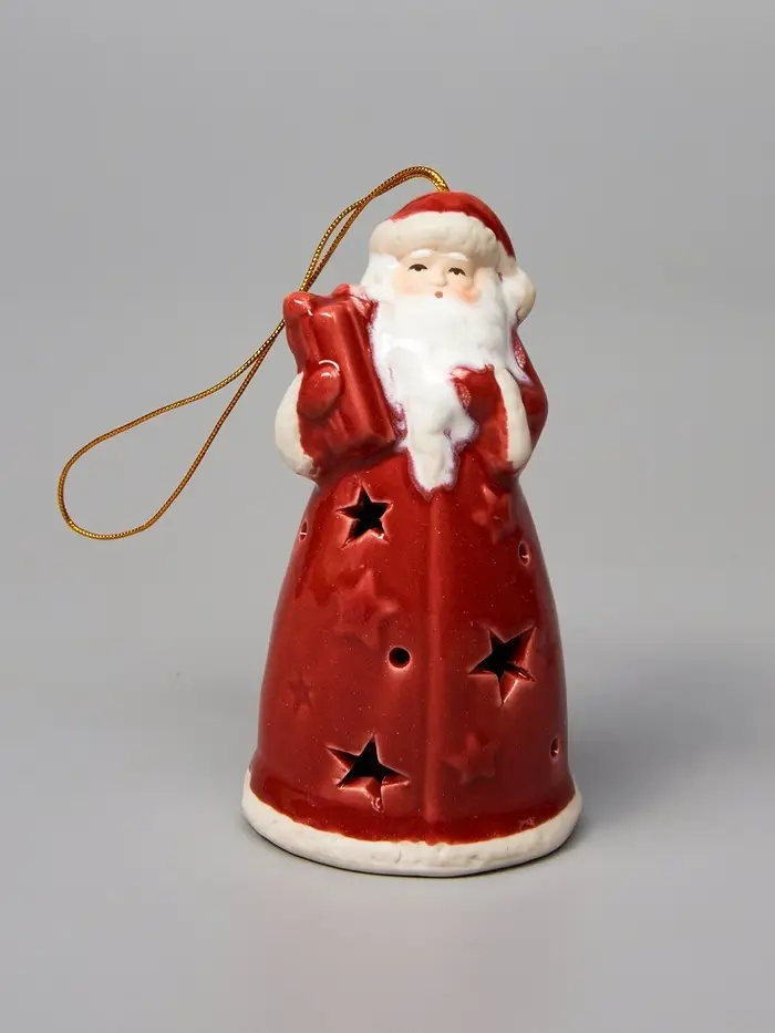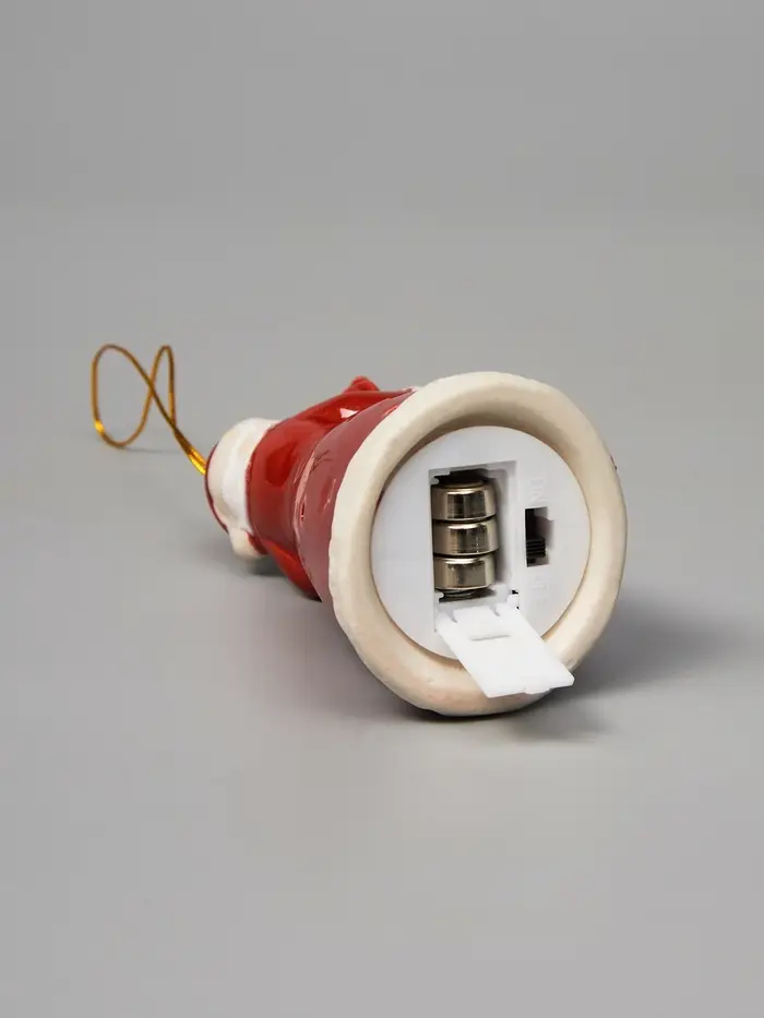 Светодиодный подвес «Дед Мороз» станет идеальным праздничным украшением для вашей новогодней ёлки. В миниатюрной керамической форме он излучает тёплый белый свет, создавая уютную атмосферу. Уникальный декор привнесёт радость и немного волшебства в ваш дом благодаря своему мерцающему сиянию, работающему от батареек.