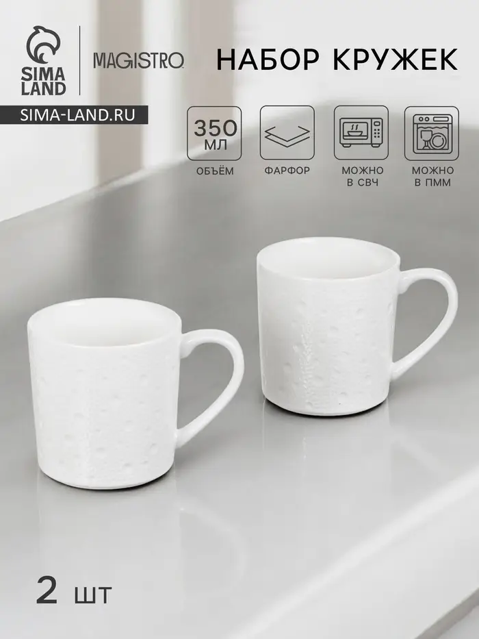 Набор кружек Magistro Fray, 350 мл, 2 шт., фарфор, белый