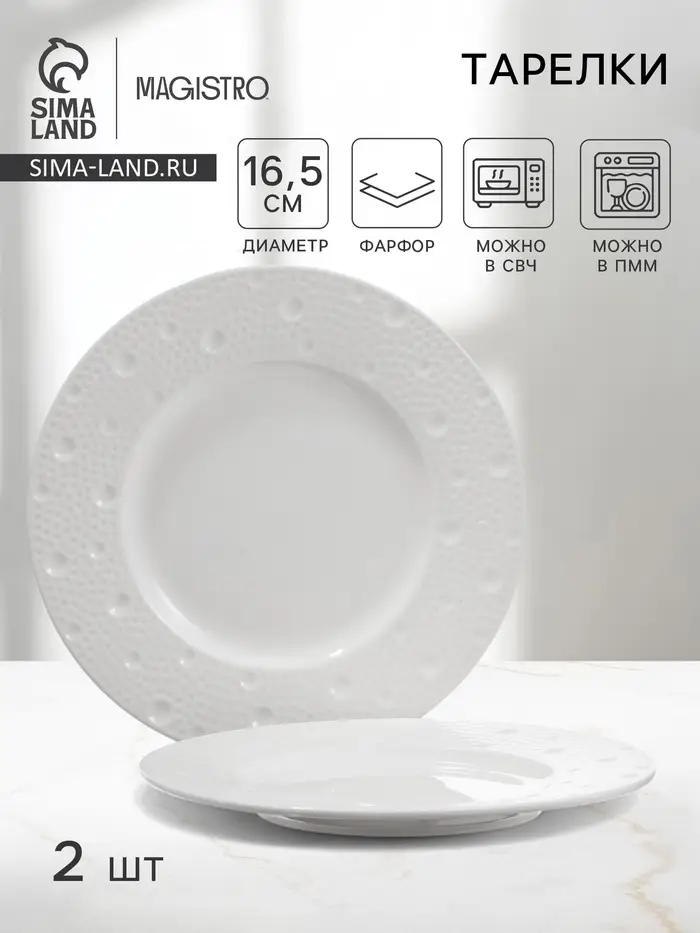 Тарелки Magistro Fray, набор 2 шт., d=16.5 см, фарфор, белые