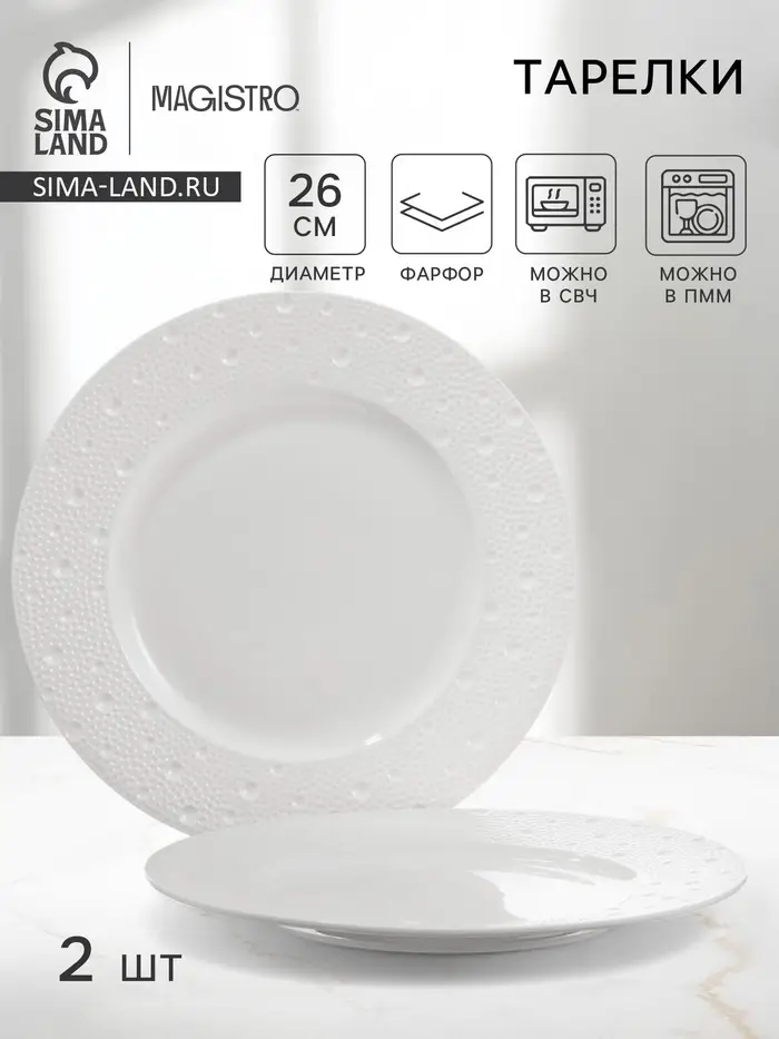 Тарелки Magistro Fray, набор 2 шт., d=26 см, фарфор, белые