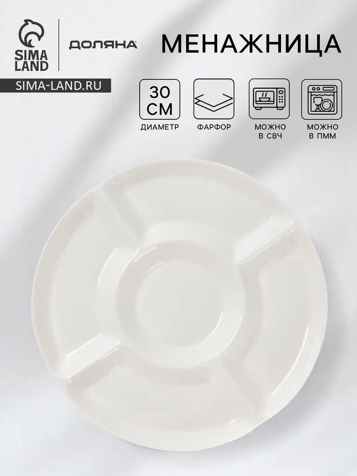 Менажница Доляна White Label, 5 секций, d=30 см, фарфор, белая