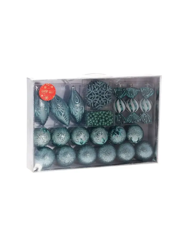 Новогодние игрушки «Чудесный день» — это разнообразный и мягкий набор для украшения ёлки в зелёной гамме. В комплекте 25 пластиковых элементов разных форм: шары, снежинки, леденцы, бусы, сосульки и конфеты. Все детали однотонные и выполнены в духе сразу нескольких стилей: шебби-шик, новогоднее барокко, скандинавский дизайн, датский минимализм и фьюжн. Это универсальный выбор для тех, кто любит создавать праздничную атмосферу с акцентом на свет, форму и зимнюю гармонию.