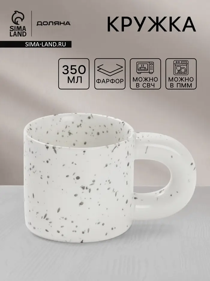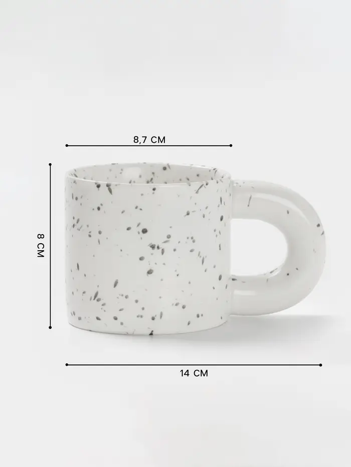 Привнесите немного игривости в свою кофейную рутину с этой оригинальной фарфоровой кружкой. Объем 350 мл прекрасно подходит для утреннего кофе, чая или какао. Белый цвет с рисунком «в крапинку» добавит хорошего настроения на весь день.