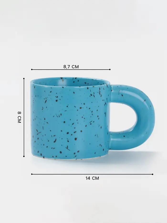 - Уникальный дизайн «в крапинку» и яркий голубой цвет делают кружку стильным аксессуаром на вашей кухне.