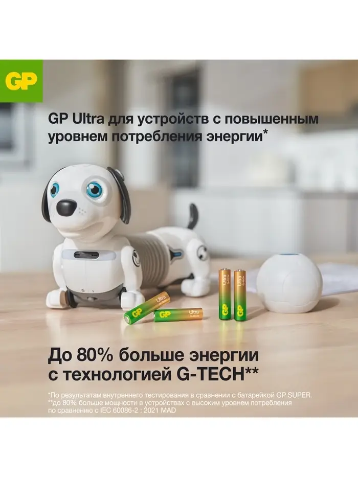 Получите максимальную отдачу от ваших устройств с щелочными батарейками GP Ultra с технологией G-TECH. Эти батарейки обеспечивают до 80% больше энергии* и гарантируют долгий срок службы вашего оборудования. Благодаря использованию графита повышенной чистоты и высококачественного порошка цинка S, батарейки обеспечивают высокую мощность и стабильное напряжение на протяжении длительного времени. Улучшенная система предотвращения протечек обеспечивает безопасность использования и сохранность устройств. Батарейки GP Ultra идеально подходят для широкого спектра портативных устройств, таких как устройства для красоты и здоровья, моторизованные игрушки, фонарики, беспроводные мыши, клавиатуры и многое другое. Выбирайте батарейки GP Ultra с технологией G-TECH для обеспечения высокой производительности ваших устройств.