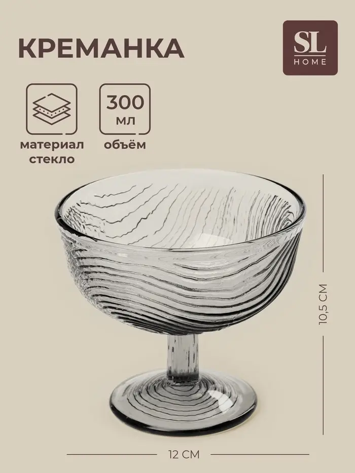 Креманка SL-Home «Барк», 300 мл, h=10.5 см, стекло, серая