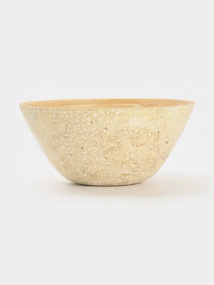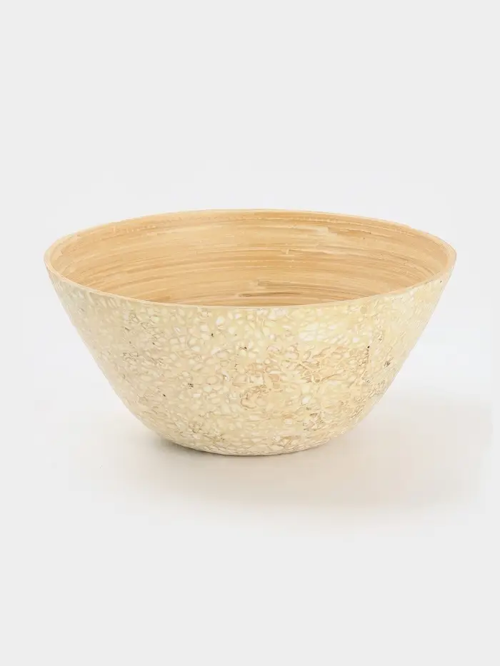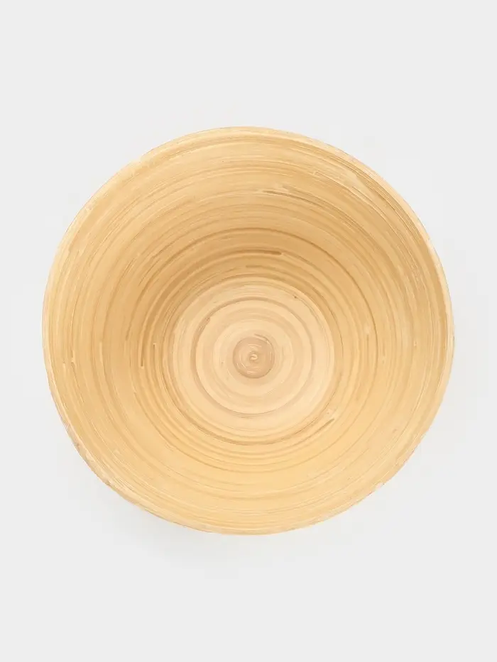 Элегантный салатник, выполненный из натурального бамбука, станет неотъемлемой частью вашего стола. Цвет изделия — бежевый, гармонично сочетается с любым интерьером, а изысканные узоры придают ему индивидуальность. Диаметр посуды составляют 29 см, форма — элегантно изогнутая трапеция, плавно переходящая в круг. Хотя салатник нельзя использовать в микроволновой печи и мыть в посудомоечной машине, ручная обработка и гладкая текстура создают чувство особой нежности и заботы. Идеален для сервировки горячих блюд.