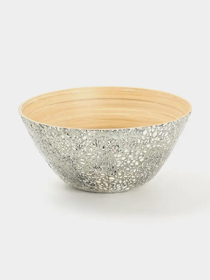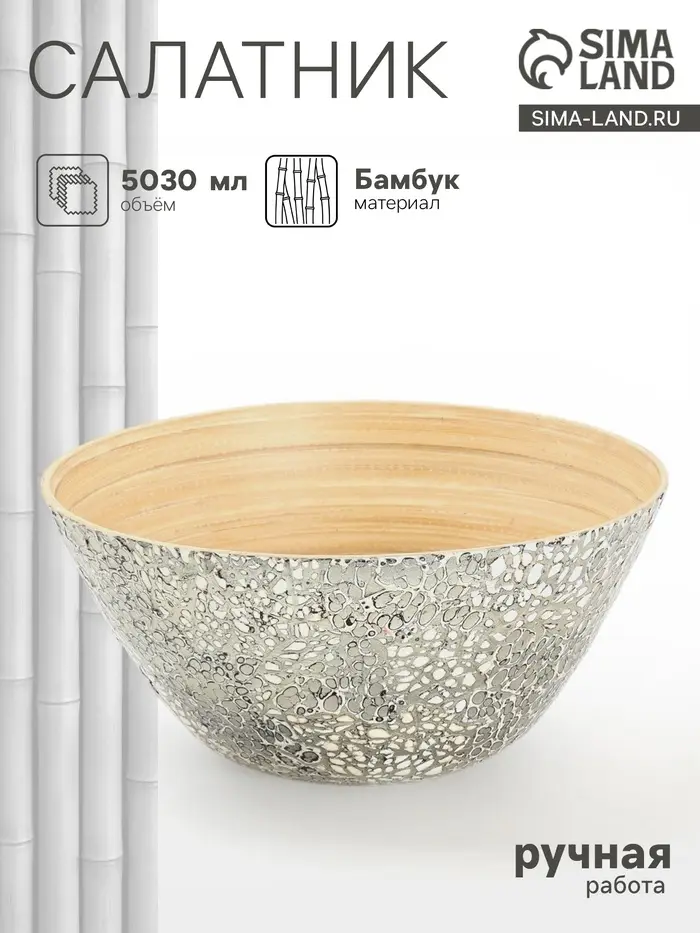 Наш бамбуковый салатник — это изысканный выбор для тех, кто ценит комфорт и стиль в каждой детали. Золотистое и белое оформление с узорами привлекает внимание и подчеркивает ваш хороший вкус. Идеальные размеры (29×29×13.5 см) обеспечивают удобство использования для сервировки как горячих, так и холодных блюд, но без опасности для микроволновки и посудомоечной машины. Трапециевидная форма добавляет оригинальности, а ручная работа, выполненная с особым вниманием к деталям, делает каждый экземпляр уникальным.