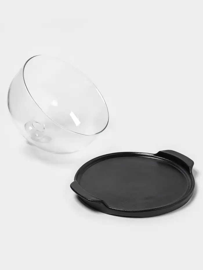 Представьте свои десерты в самом выгодном свете с этим элегантным черным блюдом. Диаметр 22 см идеально подходит для тортов, пирожных и других сладостей. Прозрачная стеклянная крышка-клош не только защищает десерты от высыхания, но и позволяет любоваться ими. Создайте атмосферу праздника и восхитите своих гостей.
