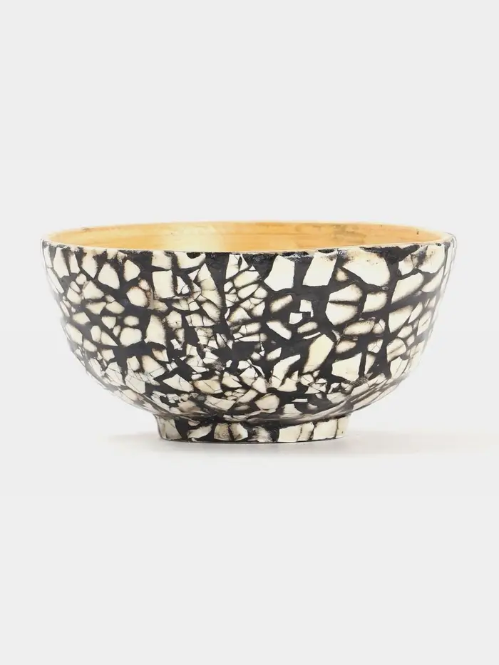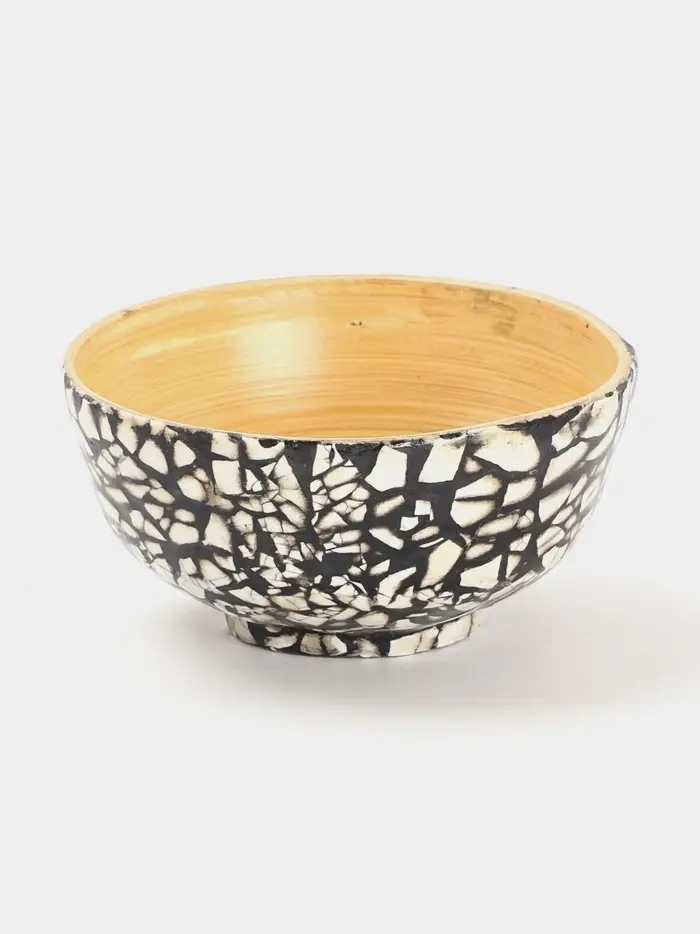 Миска из бамбука с изысканным узором. Диаметр 12 см, подойдет для сервировки горячих блюд. Коричнево-белая палитра и гладкая фактура подчеркивают стиль и простоту. Ручная работа делает каждое изделие уникальным. Избегайте использования в микроволновой печи и посудомоечной машине.