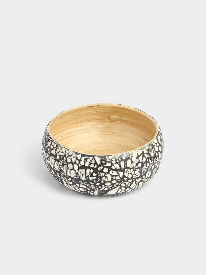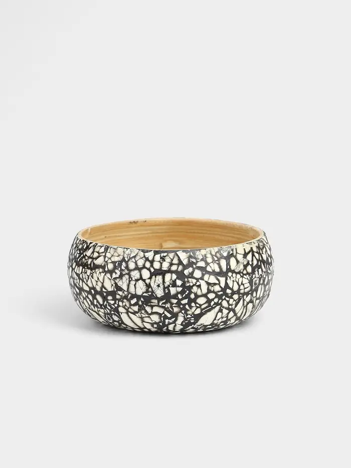 Ваза из бамбука диаметром 15 см и высотой 6 см — это идеальное сочетание природной эстетики и функциональности. Декоративный элемент, который украсит ваш интерьер узорчатым рисунком в оттенках коричневого и белого. Ручная работа гарантирует уникальность каждой вазы.