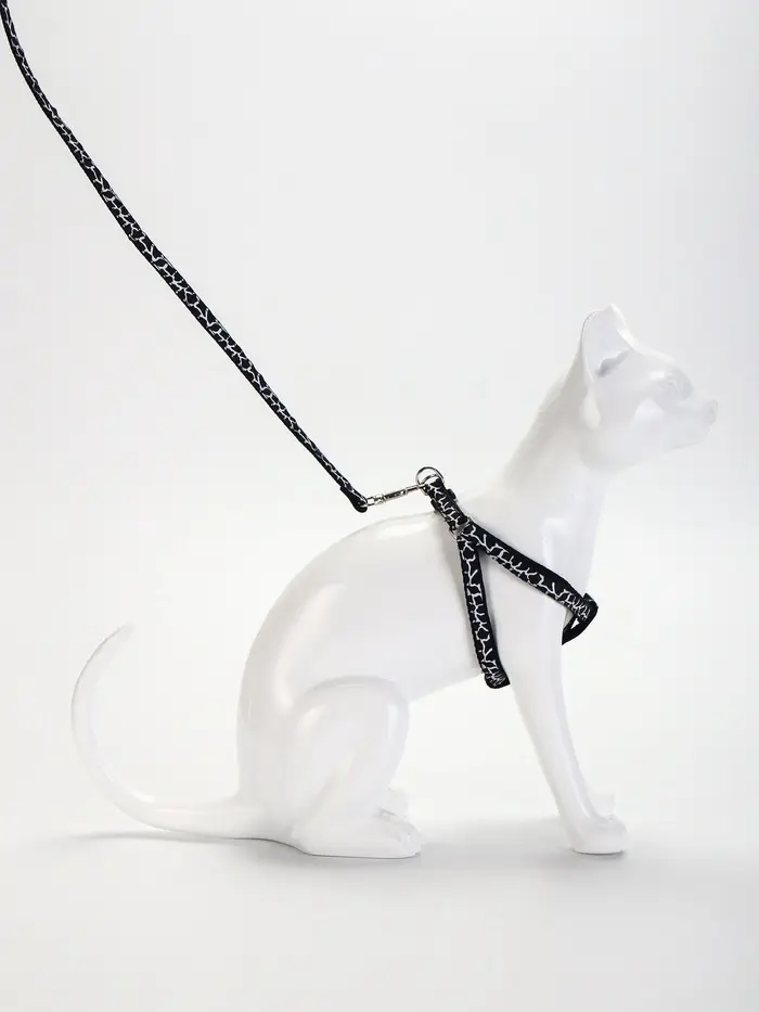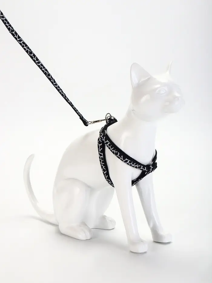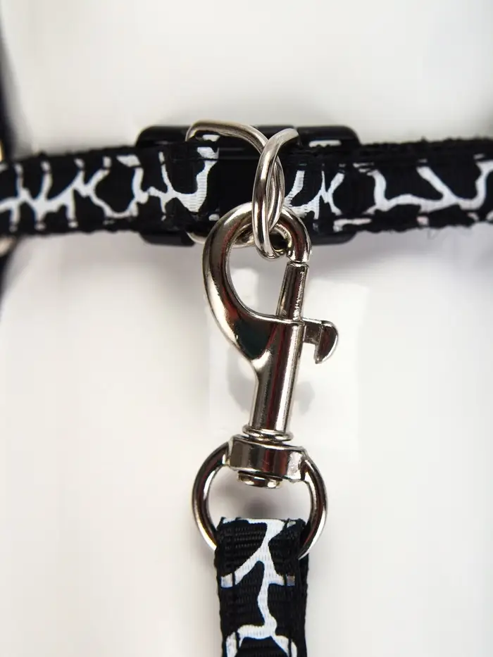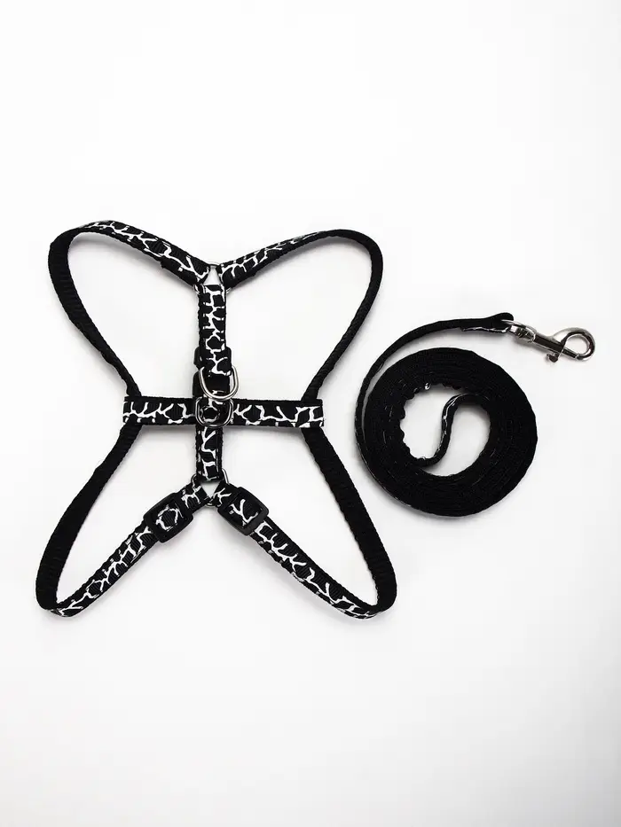 Шлейка с поводком «Жираф», ширина 1 см, поводок 120 см, шлейка 23-35 см, чёрная, белая