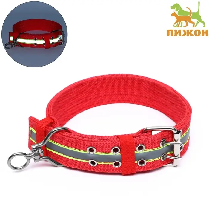 Ошейник четырехслойный светоотражающий с вертлюгом, 65×4 см, красный