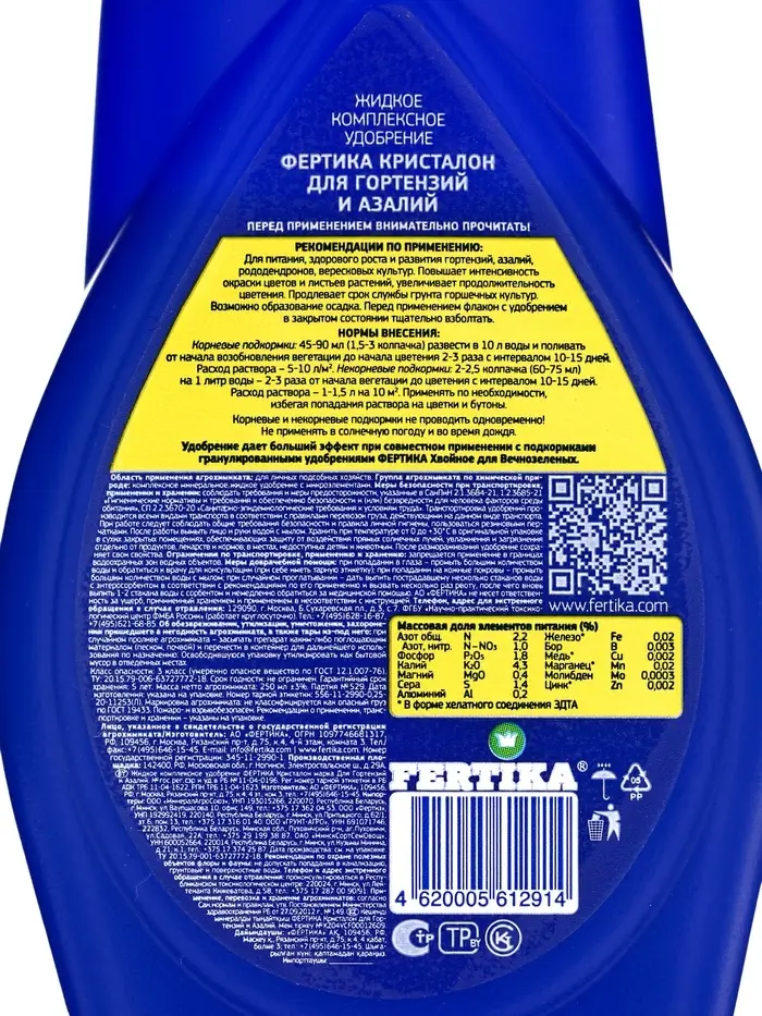 Для питания, здорового роста и развития гортензий, азалий, рододендронов, вересковых культур.