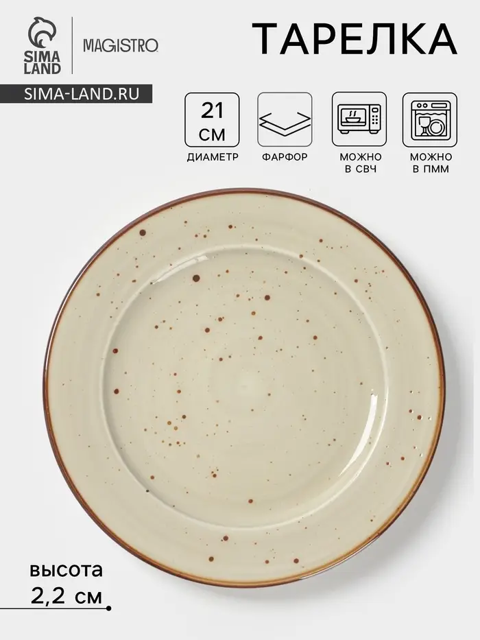 Тарелка Magistro Mediterana, d=21 см, фарфор, бежевая