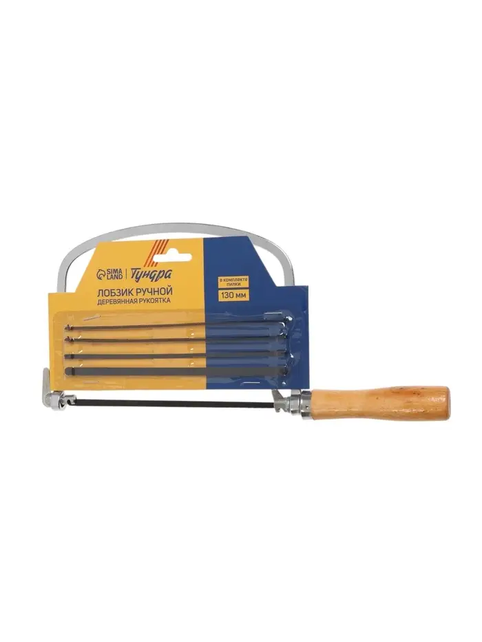 Лобзик ручной ТУНДРА, деревянная рукоятка, в комплекте пилки, 130 мм