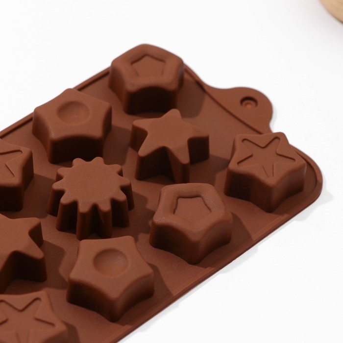 Форма для конфет и шоколада Доляна «Звёзды», 21×11×1,5 см, 14 ячеек (3×3 см), цвет коричневый