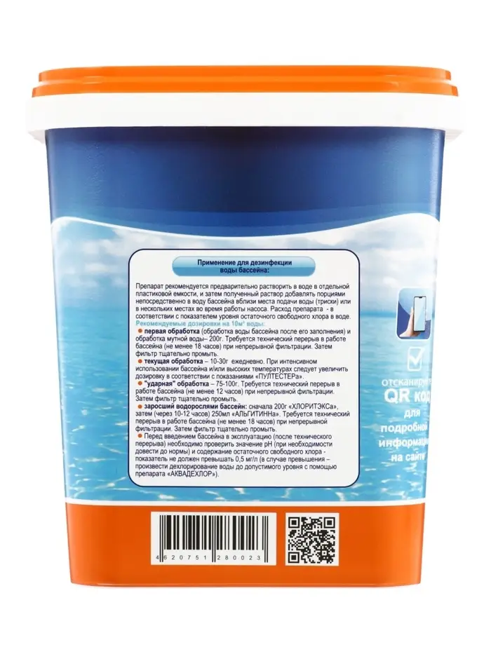 Препарат предназначен для быстрой дезинфекции воды бассейна и дезинфекция различных объектов в бассейне – фильтров, поверхности чаши бассейна, душевых, уборочного инвентаря и т.д.