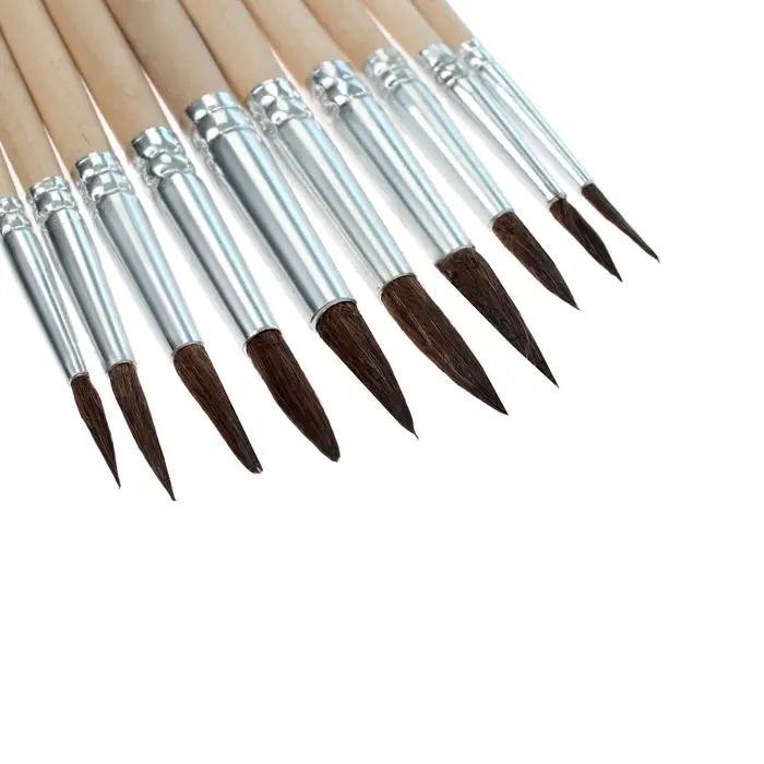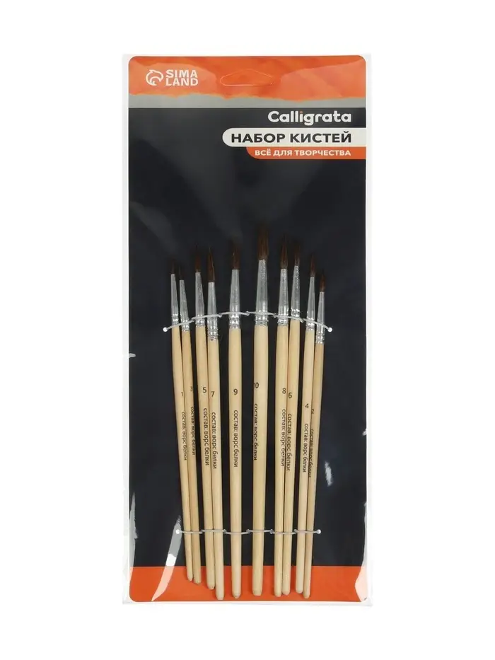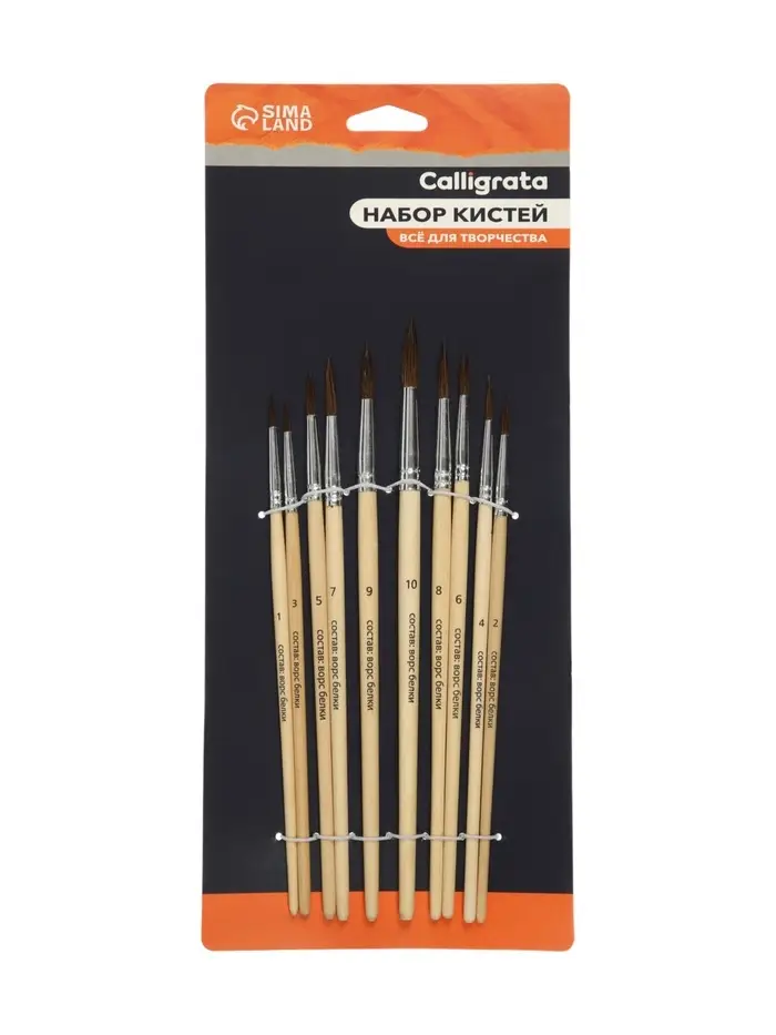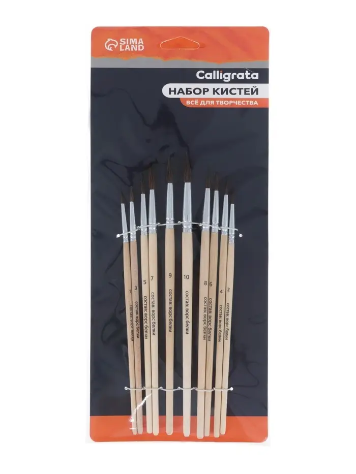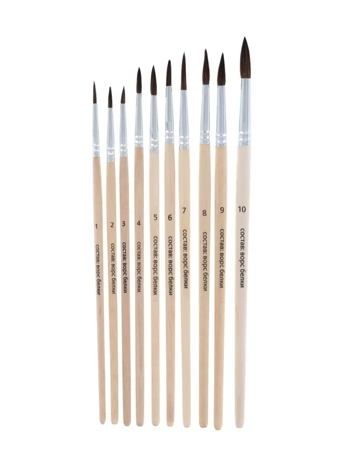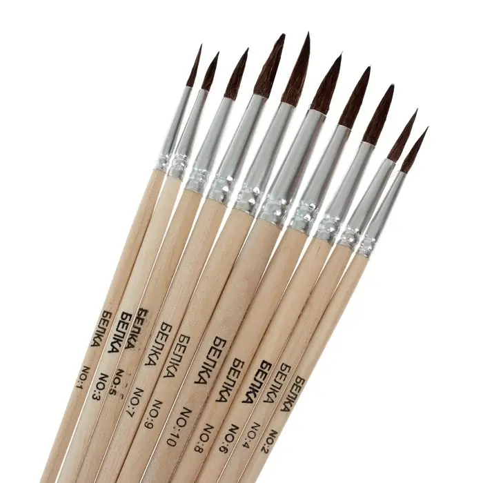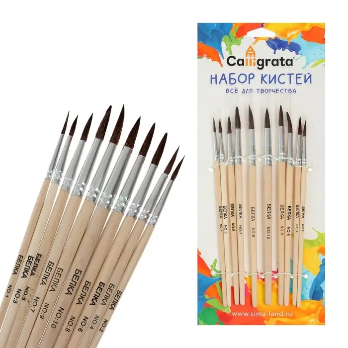 Набор кистей для рисования, белка, 10 штук: № 1, 2, 3, 4, 5, 6, 7, 8, 9, 10, Calligrata, круглые, деревянная ручка, международный размер