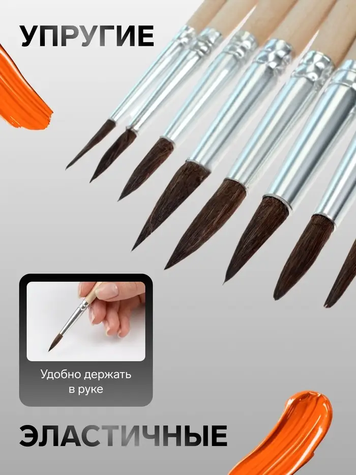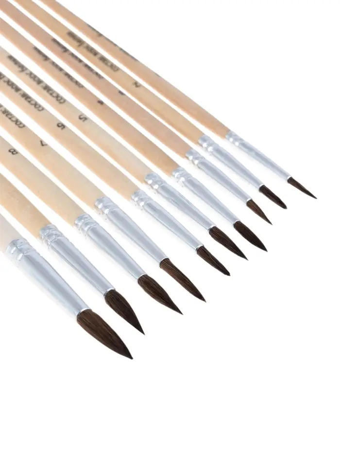 - Идеальный беличий ворс для акварели: Натуральный волос бережно удерживает влагу и обеспечивает плавные цветовые переходы. Кисти подходят для лессировок и техники «по-мокрому».