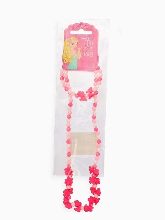 Нежный комплект украшений для девочек, объединяющий бусы и браслет диаметром 6 см, выполнен в изысканном розовом цвете с элементами пластика и дерева. Такой набор станет ярким акцентом в образе, подчеркивая утонченность и детскую непосредственность.