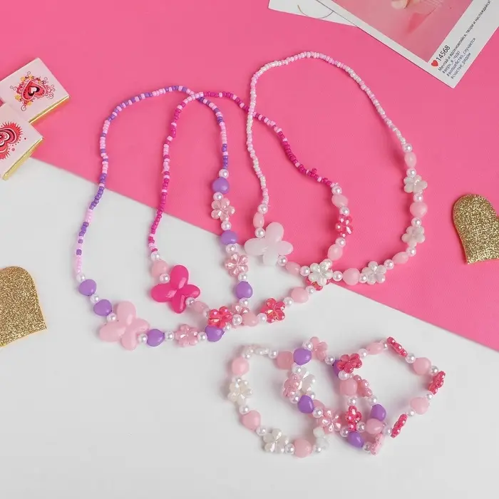 Набор детский «Выбражулька. Ромашки с бабочкой», 2 предмета: бусы, браслет, МИКС