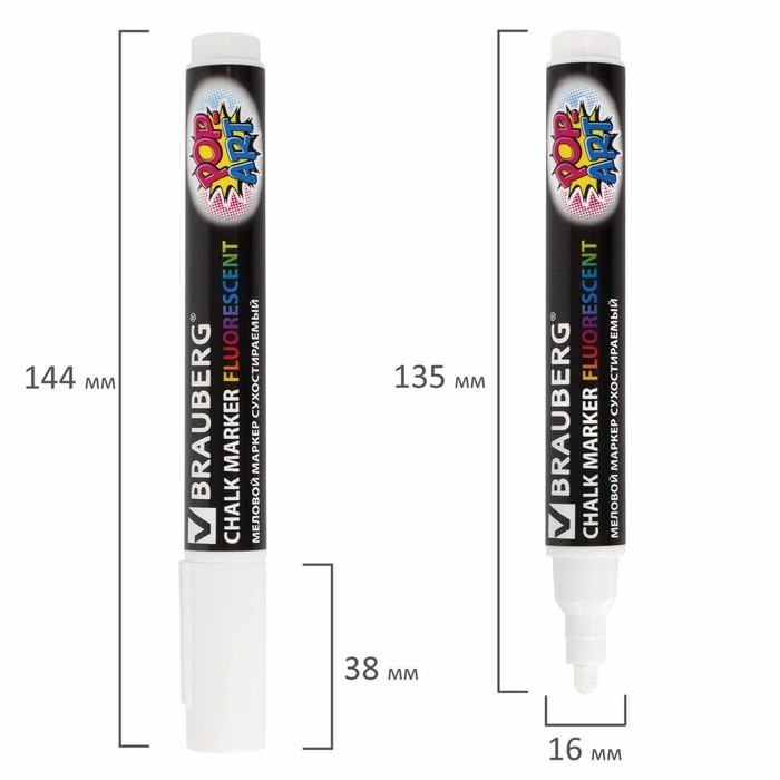Маркер BRAUBERG "POP-ART" — это сухостираемый меловой маркер, предназначенный для использования на гладких поверхностях, таких как стекло и белые доски, позволяет создавать четкие линии. Флуоресцентный белый цвет делает его заметным и привлекательным для различных приложений, включая оформление, презентации и обучение. Маркер легко стирается с поверхности, что позволяет многократно использовать его без остаточной записи.