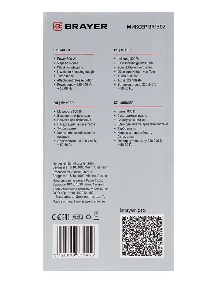 Этот миксер — не просто кухонный прибор, а надежный помощник, который сделает процесс приготовления пищи быстрым, легким и приятным. С ним вы сможете создавать кулинарные шедевры, радуя себя и своих близких.