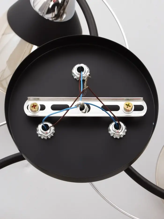 - Чёрное основание с хромированными акцентами: придаёт люстре благородный и современный вид, идеально сочетаясь с интерьерами в стиле хай-тэк.