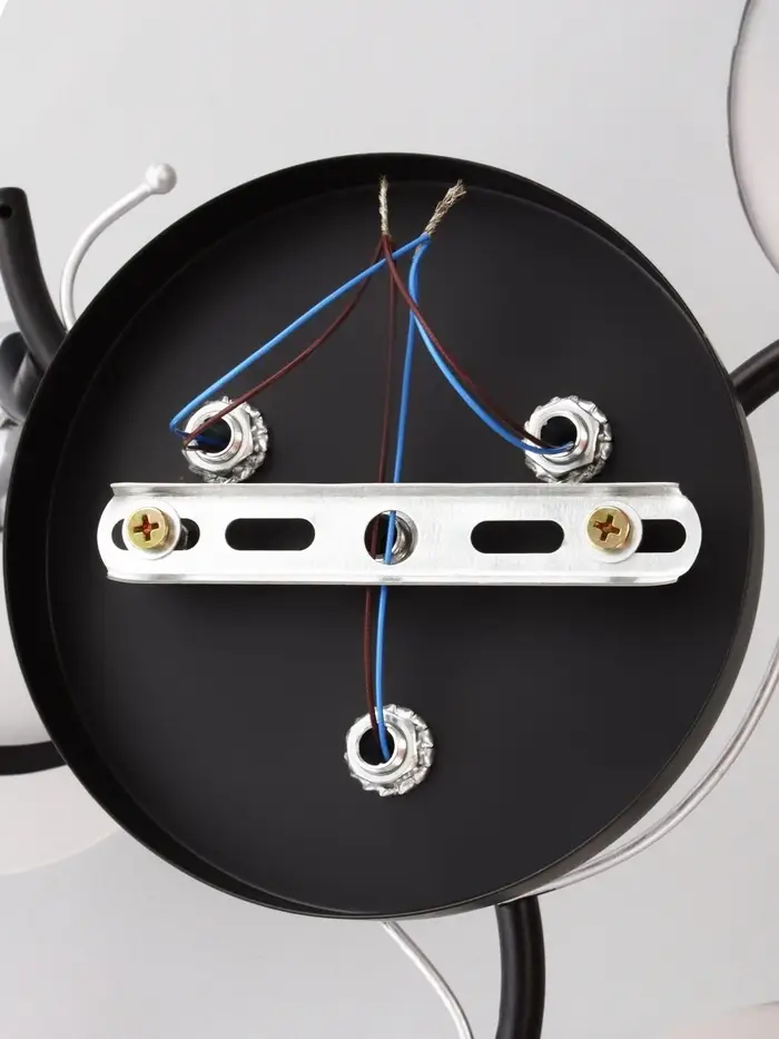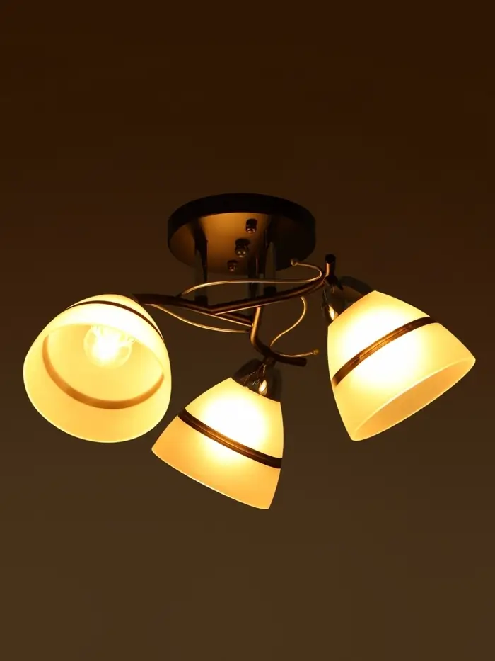 Люстра крепится к потолку за основание, что делает установку простой и удобной. Подходит для натяжных потолков (при использовании светодиодных ламп), что расширяет возможности применения.