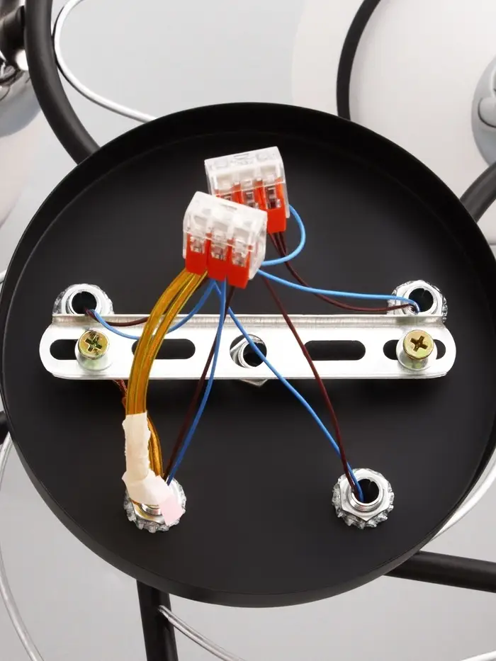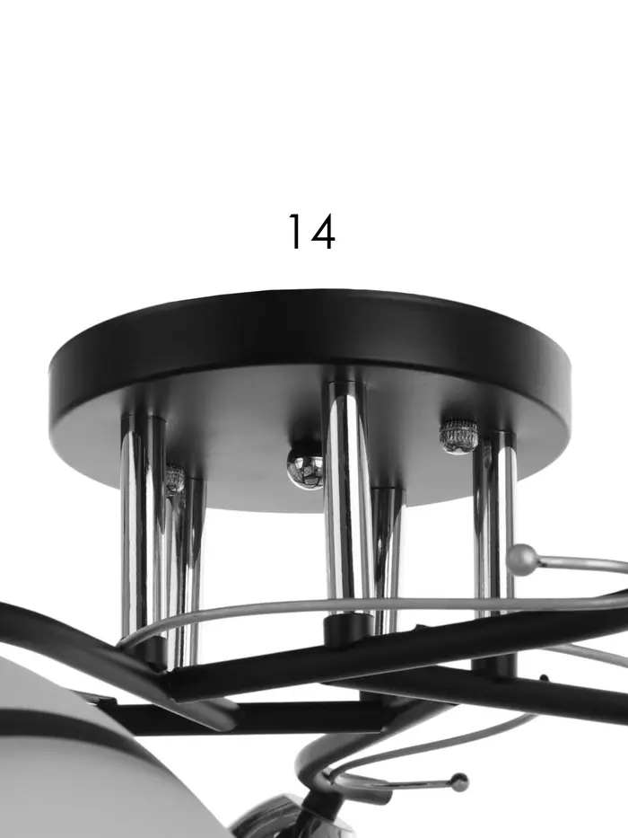 - Чёрное основание с хромированными акцентами: придаёт люстре благородный и современный вид, идеально сочетаясь с интерьерами в стиле хай-тэк.