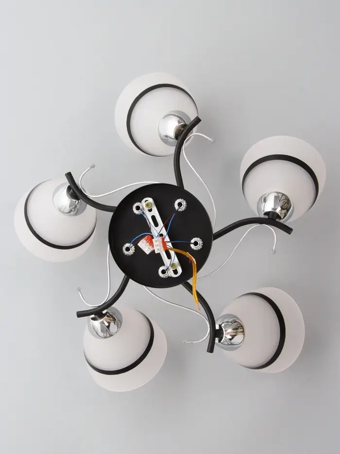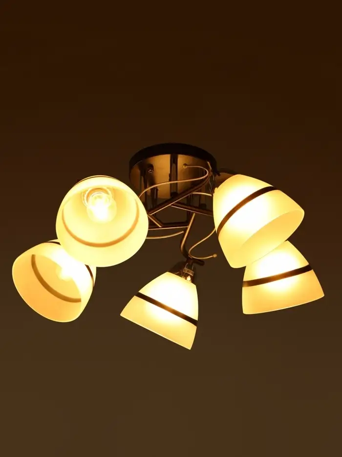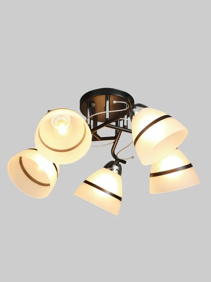 Люстра крепится к потолку за основание, что делает установку простой и удобной. Подходит для натяжных потолков (при использовании светодиодных ламп), что расширяет возможности применения.