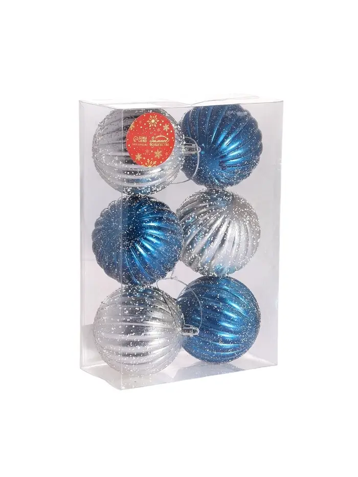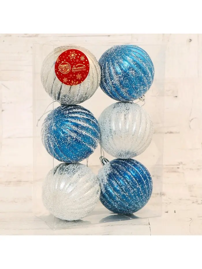 Ёлочные игрушки «Роксолана», шары новогодние, набор 6 шт., d=8 см, бело - синий