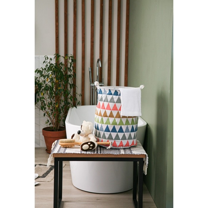 Корзина бельевая Доляна «Цветные треугольники», 35×35×45 см, текстиль