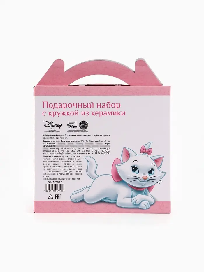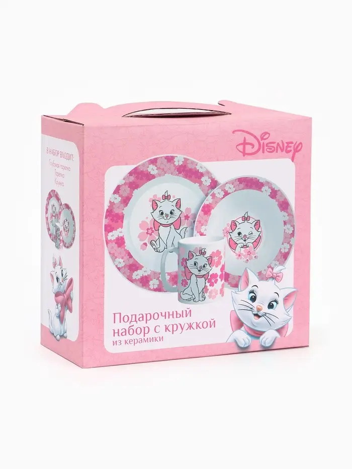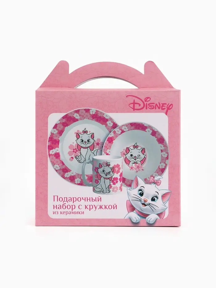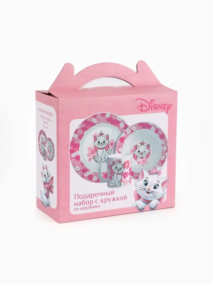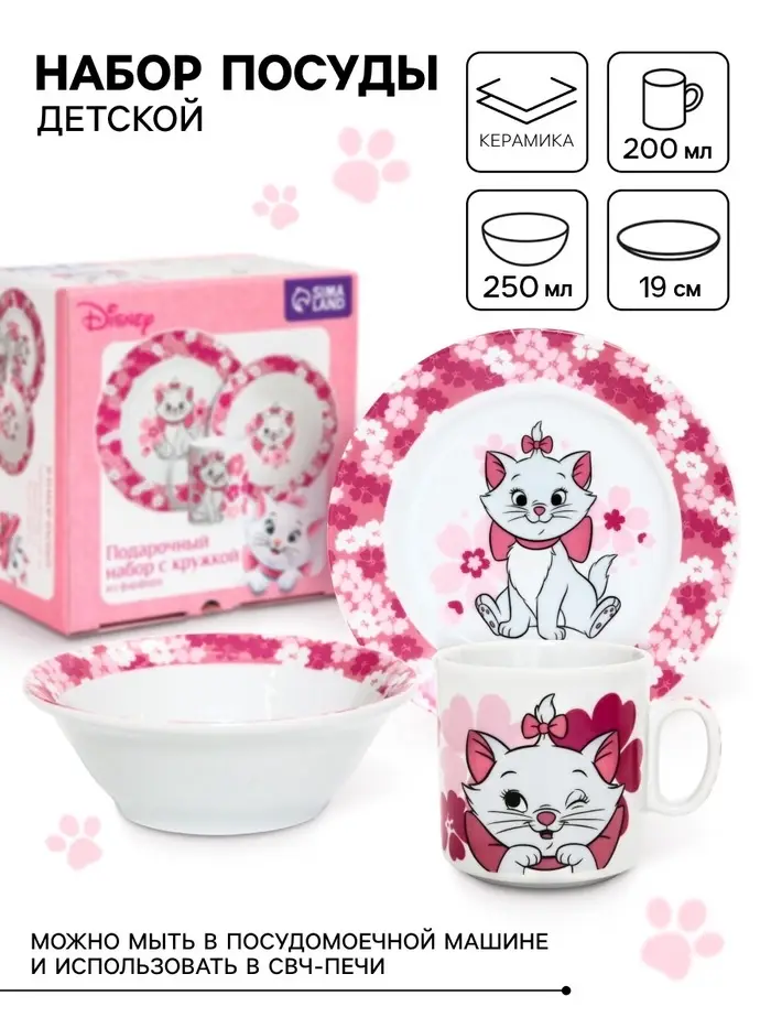 Набор посуды керамической детской, 3 предмета: кружка 200 мл, тарелка 19 см, салатник 250 мл, «Кошечка Мари», Коты Аристократы