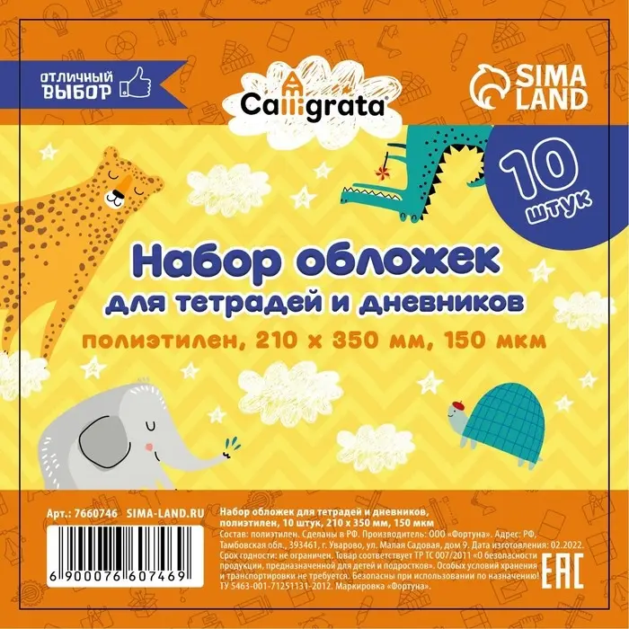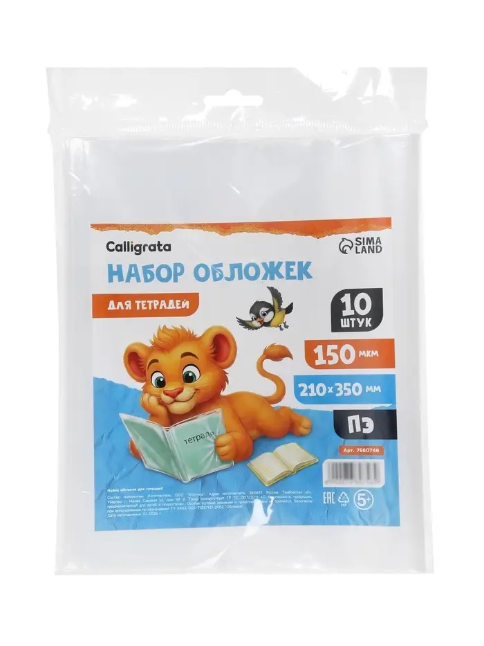 Набор обложек ПЭ 10 штук, 210×350 мм, 150 мкм, для тетрадей и дневников (в мягкой обложке)