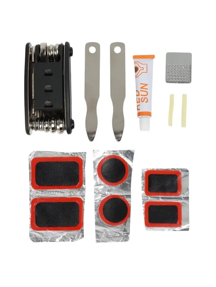 Набор велоинструментов: чехол, мультитул, ремкомплект, монтажки